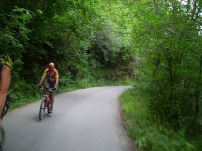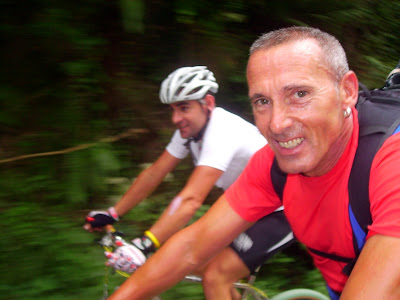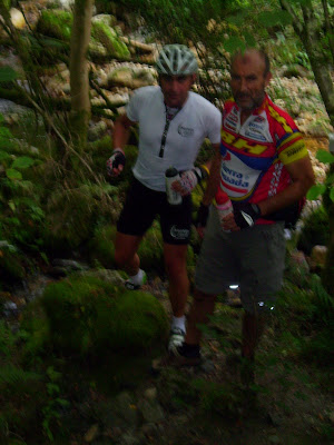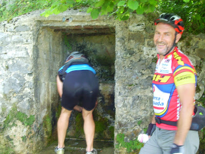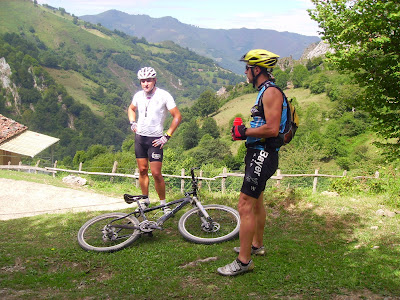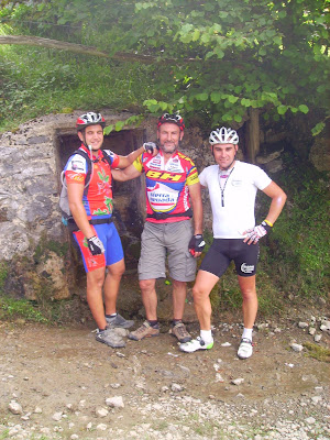 Aquí los tenéis a los dos maquinas, yo poco a poco me fui acercando al mi amiguin. Un amiguin por ahíOtru amiguin por aquíEsti también ye amigu, pero hoy, cambiome por Pablo, que anda más y mejor Tiu y sobrin mano a mano ¿Qué tramarían ahí en la fuente? Bueno, por fin los alcanzo, casi en felguera, pero tan ahí. Menos mal que tengo ahí los mi amiguinos y me esperaron pa la foto Pero que poco esperaron, nada más que pueden, con la disculpa de ir a poner los garbanzos, abajo como tiros. Menos mal que alguno, tardo un poco más que yo en prepararse, si no otru baja como un tiruCon la misma, nos despedimos de el de los garbanzos y continuamos a coger un poco agua, en la fuente de les Capes. Menos mal que Maldonado nos metió el miedo en el cuerpo, no se sino que hubiese sido de mi por coto Bello. El descenso folklórico del Nalón y pedalear no es compatible.