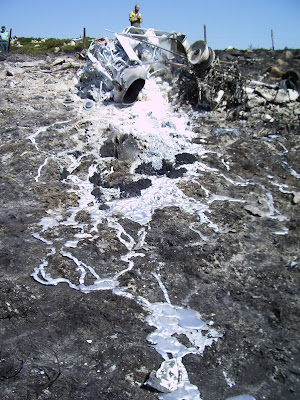 Por suerte no fue nada para lo que pudo ser. Acababa de dejar a mis compañeros en un incendio. Los pilotos a las dos horas de trabajo, tienen que volver a la base a repostar y hacer una pausa de 40 minutos. Al no estar el incendio extinguido, solo volvieron el piloto y el copiloto. Gracias a la habilidad y la experiencia del piloto, logro dentro de lo que cabe, controlarlo y posarlo hacia su lado. El copiloto logro salir por su puerta y sin ningún rasguño. Un poco menos de suerte fue la del piloto, cuando logro salir por la puerta del copiloto, tenía alguna quemadura bastante grave, pero gracias a Dios puede contarlo. El piloto fue trasladado al hospital de Oviedo. El copiloto al día siguiente, a las 08:00 de la mañana, estaba en la base trabajando, como si no hubiese pasado nada.