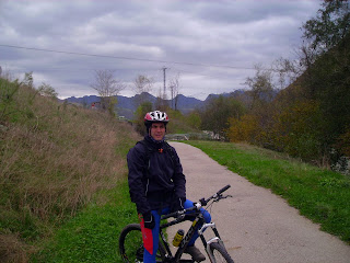 Hoy por la mañana tocaba salir un poso en bici con el amigo Luis, un gran compañero. El tiempo y el barro, nos metió un poco de miedo asique, por las pistas hasta el pantano, vuelta a Sotrondio y pa casa.